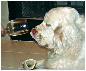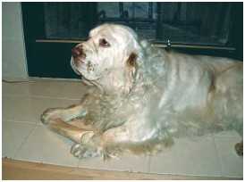 6 Weight: 60 lbs. Sex: female Residence: Saline, Michigan Significance of name: She was already named when we got her from the breeder at 1 year of age. Her full name is Clussex Eva Peron of Avalea. Favorite place to walk: Millpond Park in Saline IQ: 115; she has terrific comprehension. She watches television and is very interested in dogs and other animals. She once had a run-in with a border collie, and when she sees one on TV, she gets very agitated. She also growls and barks when something bad is happening -- when a violent act is taking place or if a villain is on the screen. Favorite toy: She doesn't play as such, but one day she became very attached to a paint roller, of all things. She grabbed it and then whimpered pathetically when we took it away. She was inconsolable for about a day. We think that, because it's soft outside and hard inside, it might have reminded her of a bird. Favorite people food: rice with cottage cheese Favorite thing to chew: sterilized cow bones Temperament/personality: laid back, calm, and stable. She's somewhat somnolent -- people think she's frowning, but we think she's thoughtful. She likes children but can be standoffish with adults. For reasons we know not, she always barks at one particular pair of friends. On a scale of 1 to 10, how obedient is she?: 4. She doesn't know a lot of commands, but if I say "go find Dick," she'll do it. Best trick: not a trick so much as an involuntary reaction to the smell of liquor or lemon juice. She wrinkles up her nose and makes a face (see bottom photos). She could be a poster dog for Alcoholics Anonymous. Cutest thing Evita does: when she sits up very alertly with her front paws crossed. One of the most endearing things about Evita is: when she runs about madly. She normally doesn't do that, and it's kind of touching to see. On a scale of 1 to 10, how human is she?: 6. She's like a very sleepy person; she looks at you with great perplexity if you bother her when she's sleepy. Evita's favorite dog: When we lived in Bloomington, Indiana, she liked a tiny Yorkshire terrier -- she seems taken with very small dogs. She is suspicious of dogs that aren't fluffy or furry. Memorable moment: One day, soon after we got her, I'd showered (my smell must have been washed off), and she barked and growled at me. (I had on a robe and my hair was pulled back in a towel.) But within a minute, she picked up my shirt in her teeth and brought it to me, as though she were trying to apologize. Or, I suppose, it's possible she was thinking "Here, put this on. That robe is awful." Comment: She inspires me occasionally to compose doggerel (no pun intended) -- I find myself reciting little poems about her. They have nonsense words, sort of like baby talk. I think she likes them, though, and I guess they express my affection. Some examples are: "Evita Maureen, the Queen of Saline," and "She's furry and soft and lives in a loft," and "Evita is sweet and has very small feet" (which she doesn't, by the way). Email: rellis2002@comcast.net |