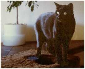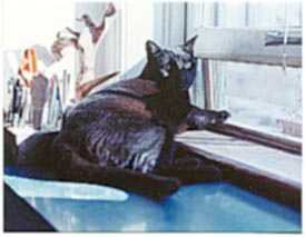 August 16, 1989 Age: 12 Sex: male Weight: 13 lbs. Residence: New York, New York Significance of name: He's named for the town of Milo, Maine, where I have a cabin. IQ: 150. He can read my mind. When it's time to put him in his carrier he seems to know to make himself scarce. It doesn't matter how clever I think I'm being in keeping him from knowing that we'll be traveling (like packing the trunk 3 days in advance and not leaving stuff by the door), he figures it out. And he always knows when a can I happen to be opening is not for him. Purrometer index: average in intensity and pitch. If I give him a quick pat or stroke him for just a few seconds he doesn't purr. He starts up only if he senses I'm committed to petting him. Favorite place to hang out: tree house in the living room Favorite toy: a stuffed Alf. He ripped its face off, which pleased me greatly. I sewed it back together with wanton carelessness to give it a more bearlike look. Favorite people food: rice, canned salmon Favorite thing to chew: plastic bags or the plastic handles on shopping bags. I do my best to keep these away from him. Best trick: chasing a ball of aluminum foil and bringing it back for me to throw again -- he won't do this with a paper ball. He taught me this trick, by the way. Temperament/personality: warm, friendly, likes people; athletic. Cutest thing Milo does: rolling on his back and looking at me upside down with paws up. Least appreciated thing he does: eating Beatlejuice's food On a scale of 1 to 10, how human is Milo?: 8. He's considerably more evolved than a human. Some human things Milo does are: knot a necktie, polish the furniture, and clean the sink. If Milo could talk, he'd say: "Lose the carrier, huh, chief?" Memorable moment: Milo was my first cat, and when I introduced Beatlejuice into the apartment, I did it by the book to ensure that Milo would adjust. I kept Beatlejuice in a closed room for 3 or 4 days. Milo was exceedingly curious. When I finally opened the door, they touched noses, and Milo hissed -- once -- and within a half hour they were playfully chasing each other. Milo was great -- dominant but not a bully. Amusing thing Milo did as a kitten: When he was small, he would spring onto the back of a wicker rocking chair, sort of claw his way up to the top, go over the top, and descend down the front. Of course, the chair would rock a bit as he did this. As weeks went by and he got bigger the chair would rock more extremely, until he got too strong and too large and the chair would fall over. Cute story: May the gods strike me down if I have a "cute" story. Comment: Not sure if Milo belongs on this site. He's not really cute, he's The Man. |