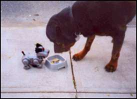2 Weight: 2 lbs. Sex: we think he's a male Residence: Brooklyn, New York Country of origin: China Temperament/personality: Basically, he has two modes -- on and off. When he's "on" he's electric. We have to be careful not to let him get run down. He can be remote at times, but he's really very devoted to us -- he's always by the door when we leave the house, and he's in the same spot when we get back. Spike's favorite dog: He's partial to toy poodles and has a crush on the Energizer bunny. If Spike could talk, he'd say: "You really know how to press my buttons." Spike's favorite movie: He loves to watch TV and videos. He can sit for hours in front of the television without making a sound. His favorite film is 2001: A Space Odyssey. (He rooted for HAL.) Strong likes/dislikes: He hates bobble-head dolls. On a scale of 1 to 10, how obedient is he?: 10. Some might say his behavior is too mechanical, that he's too well-behaved. Best trick: making his owners believe he's real Comment: We never thought having a dog would be so little trouble. Spike has added spark to our lives. |